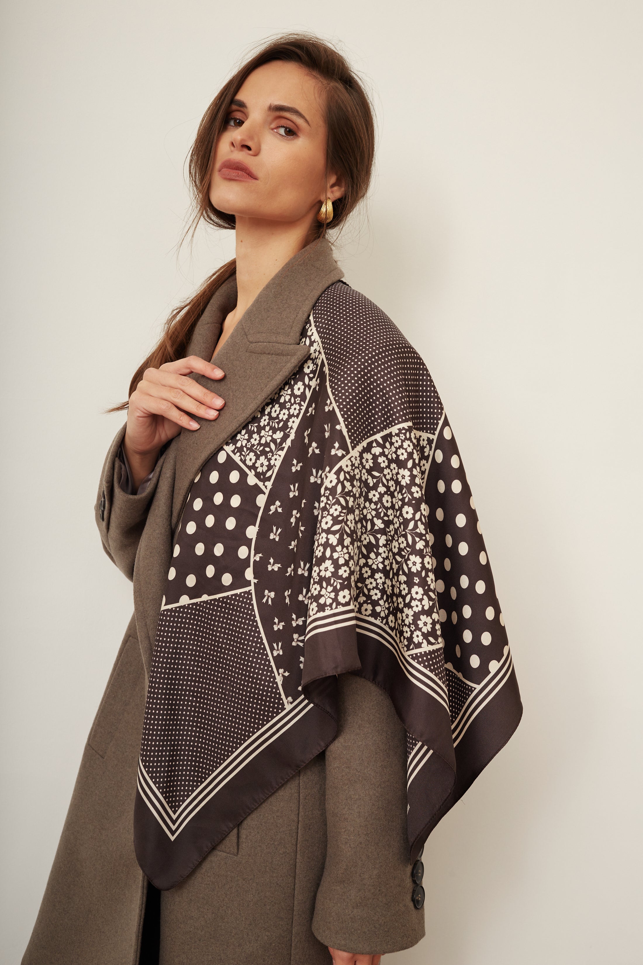 Jedwabna chusta Patchwork brązowa