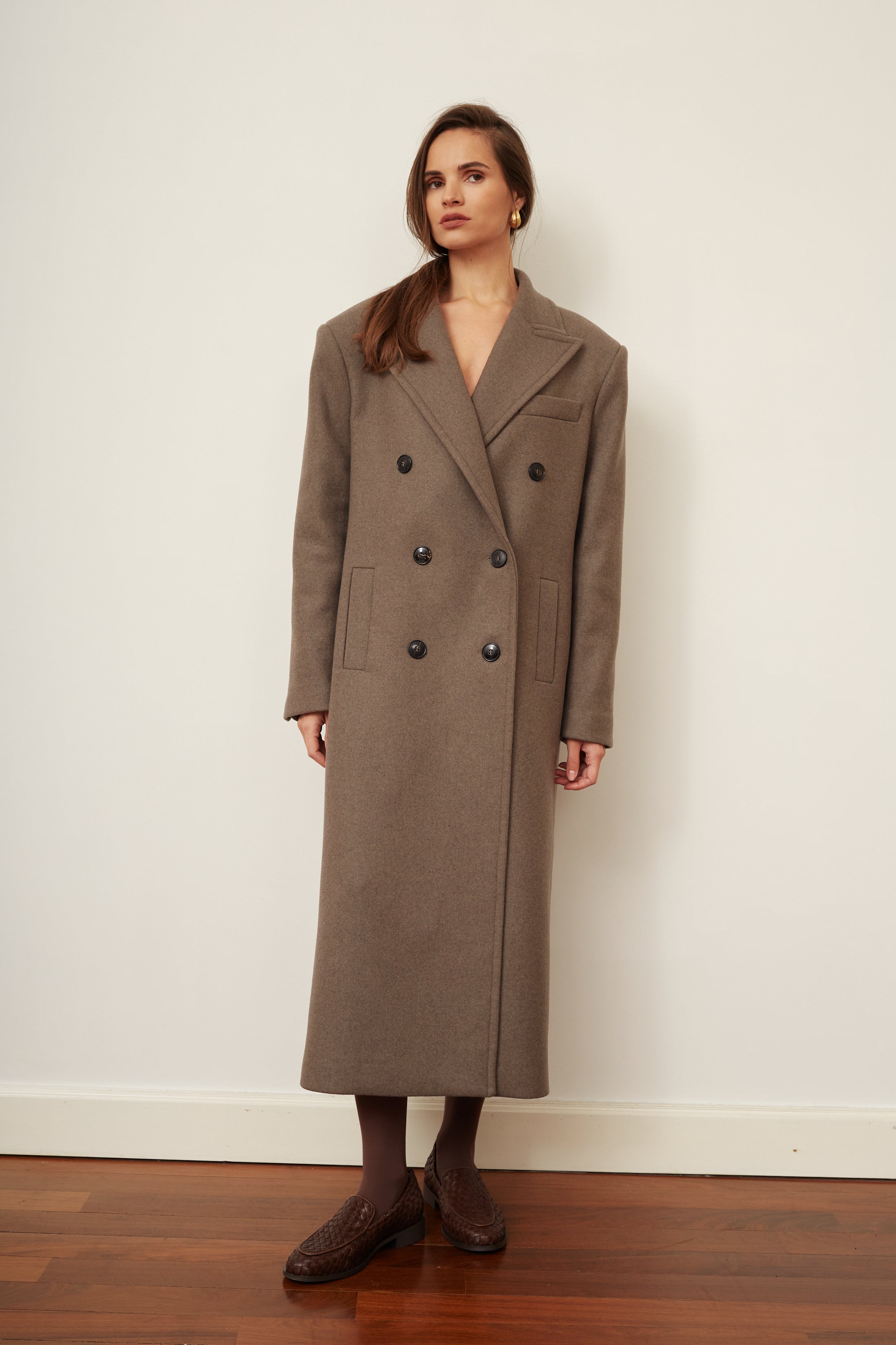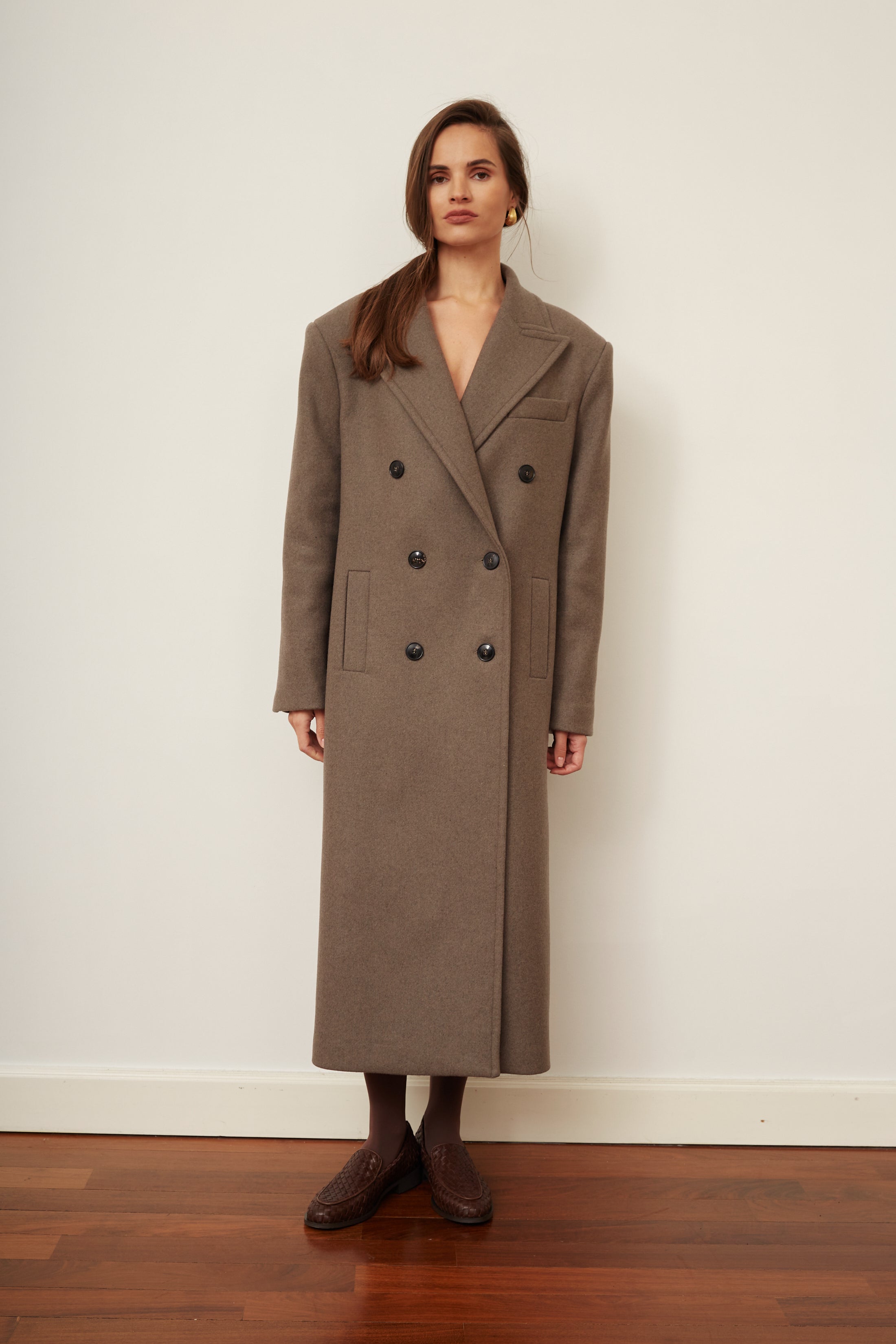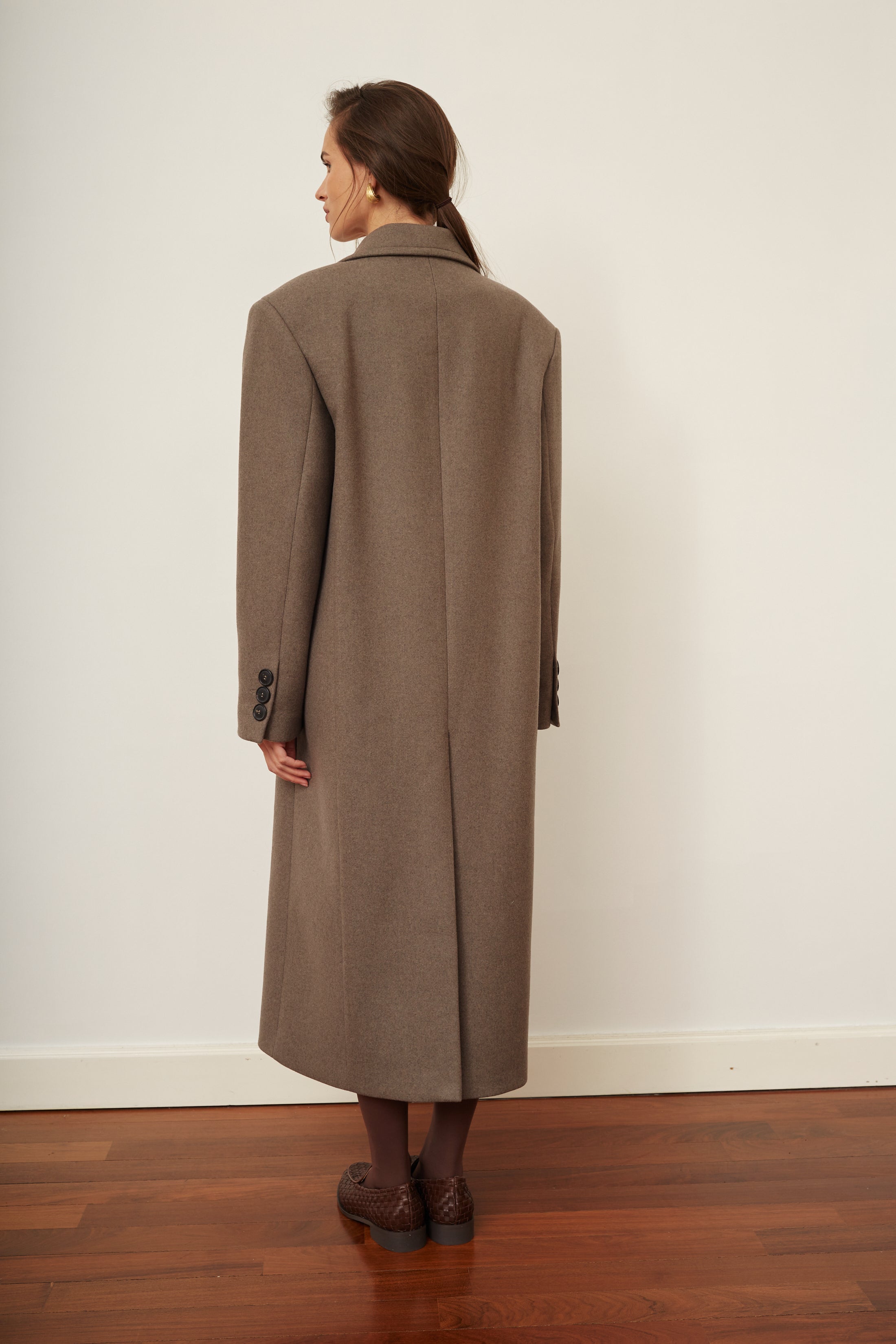 Płaszcz Gabriel ma prosty krój i dwurzędowe zapięcie. Klapy "jaskółki", poszerzone ramię z charakterną poduszką i proste kieszenie. Gabriel ma piękną prostą linię idącą wzdłuż sylwetki. Jest bardzo charakterny i nonszalancki.