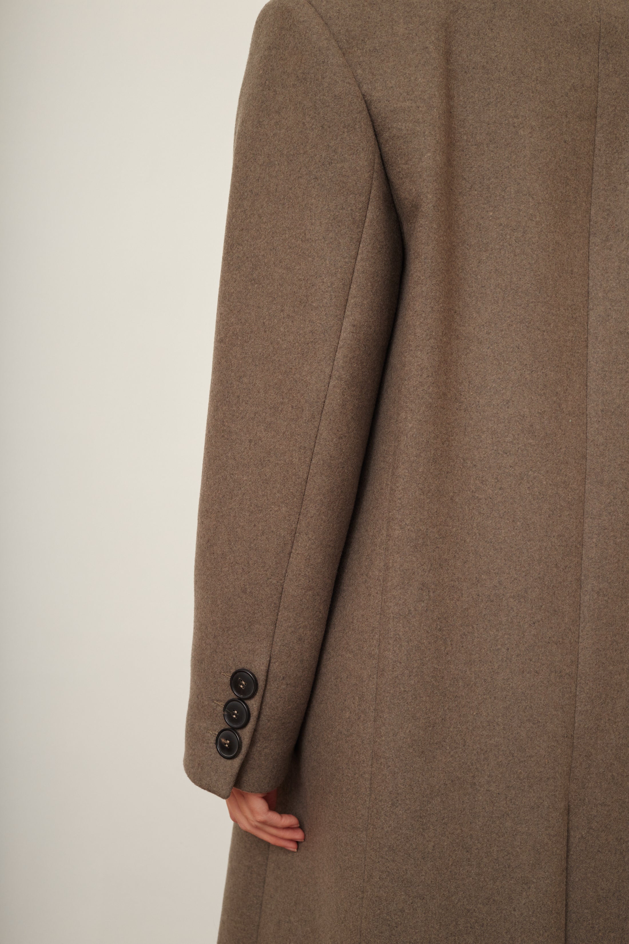 Gruby zimowy płaszcz wykonany z ekskluzywnej, mięsistej wełny o wysokiej gramaturze.