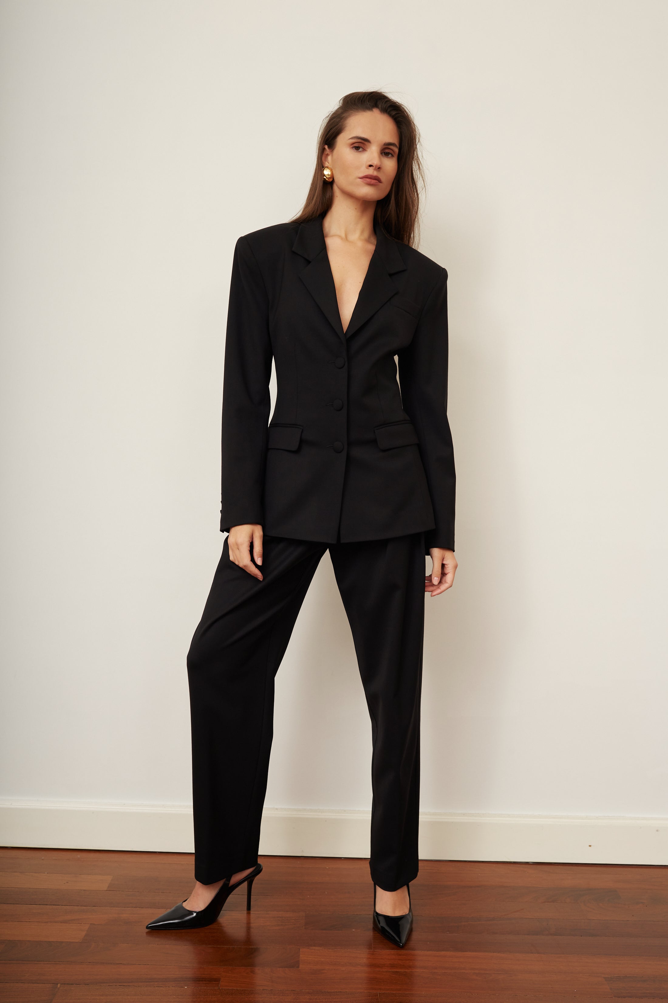 Czarne spodnie garniturowe. Wykonane z tej samej tkaniny co marynarka Lola będąca aktualnie w sprzedaży.